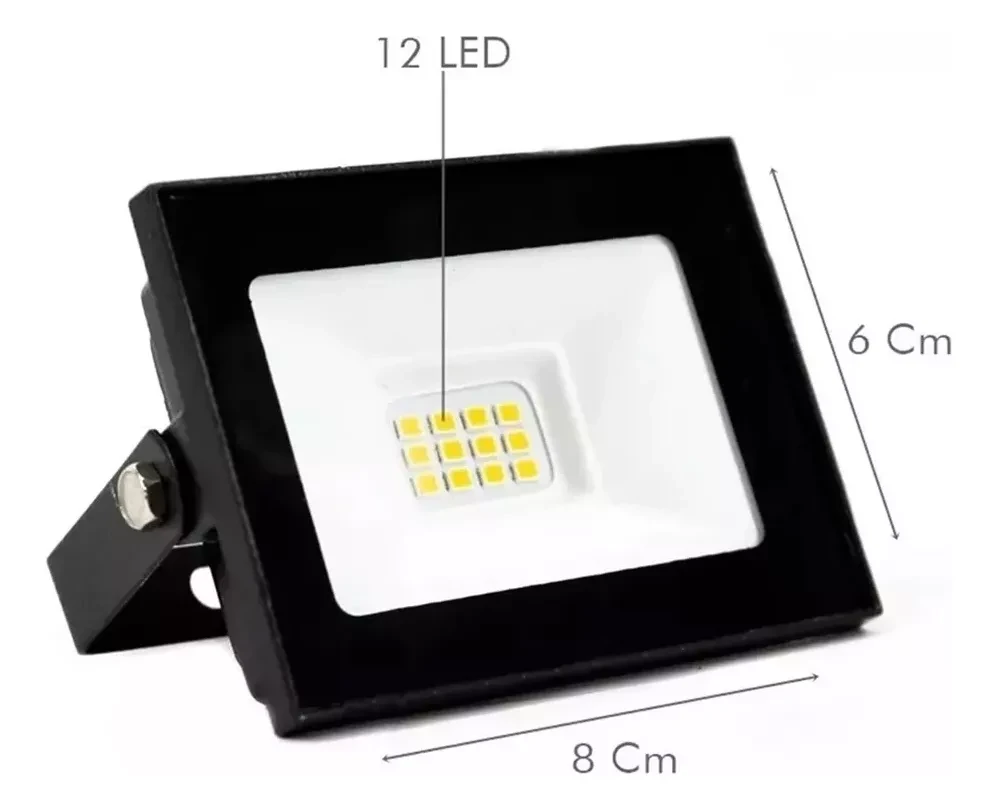 Reflector con tecnología led de alta potencia de 10W con luz fría. Es una herramienta de iluminación de gran calidad, construida con carcaza de aleación de metal y cubierta de vidrio templado, con soporte para colgar en pared o techo. Ideal para iluminar frente del hogar, patios, jardines, cocheras, galpones, talleres, comercios, canchas de juegos, y cualquier sitio que requiera de una alta luminosidad.